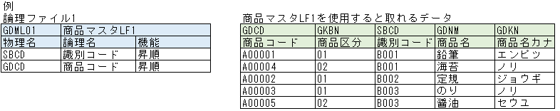 各物理ファイルは複数のレコード(行)を持ち、各レコードは複数のフィールド(列)から構成されます。
