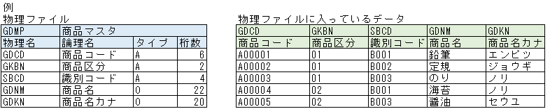 物理ファイルには通常1つのレコードフォーマット(フィールドの構成)が定義され、それに基づいてデータが格納されます。