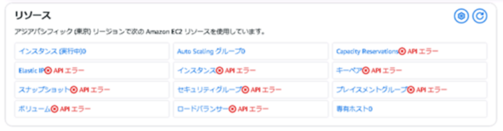 以下のように、EC2の画面でところどころAPIエラーがでるというもの